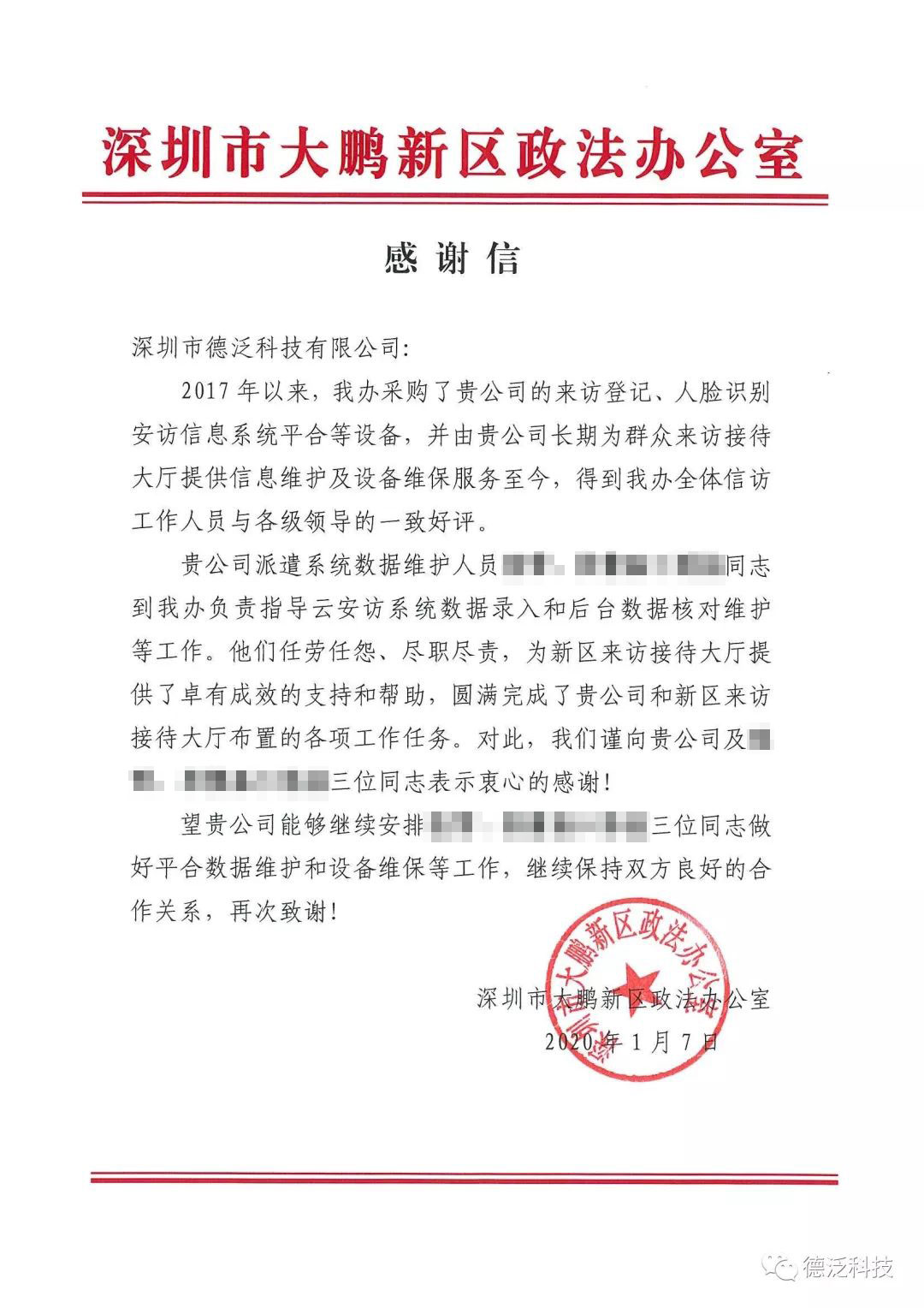 這些感謝函是對德泛科技在云安訪信息平臺項目用心服務(wù)的一種肯定及鼓勵,在今后工作中,我們將繼續(xù)提供優(yōu)質(zhì)高效的服務(wù)品質(zhì),發(fā)揚良好的工作態(tài)度,為客戶提供高質(zhì)量的服務(wù)。